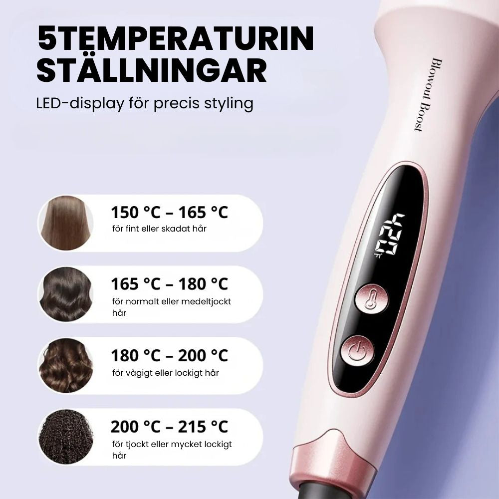 Med fem precisa värmelägen för varje hårtyp – från fint till tjockt hår.
