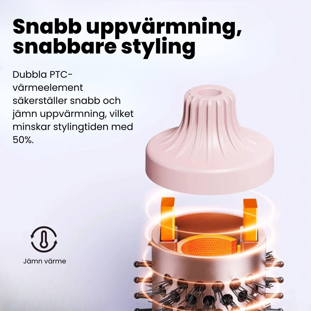 Dubbla PTC-värmeelement förkortar stylingtiden med upp till 50 %.